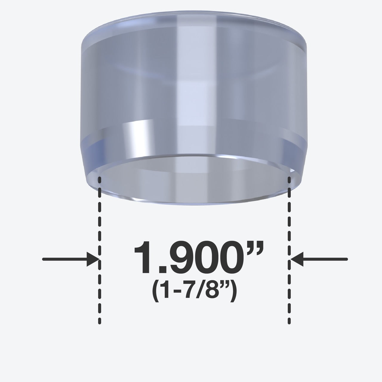 FORMUFIT 1-1/2 in. External Flat End Caps in Clear fit over the end of PVC pipe, leaving a slightly raised, flat top. 1-1/2" clear PVC End Caps have a smooth, even, and flat surface on the top, which can give a stable foundation to any project. In addition, the clear appearance of flat end caps gives a finished and professional look to projects and applications. An exceptional solution for feet or level ends in PVC projects.
