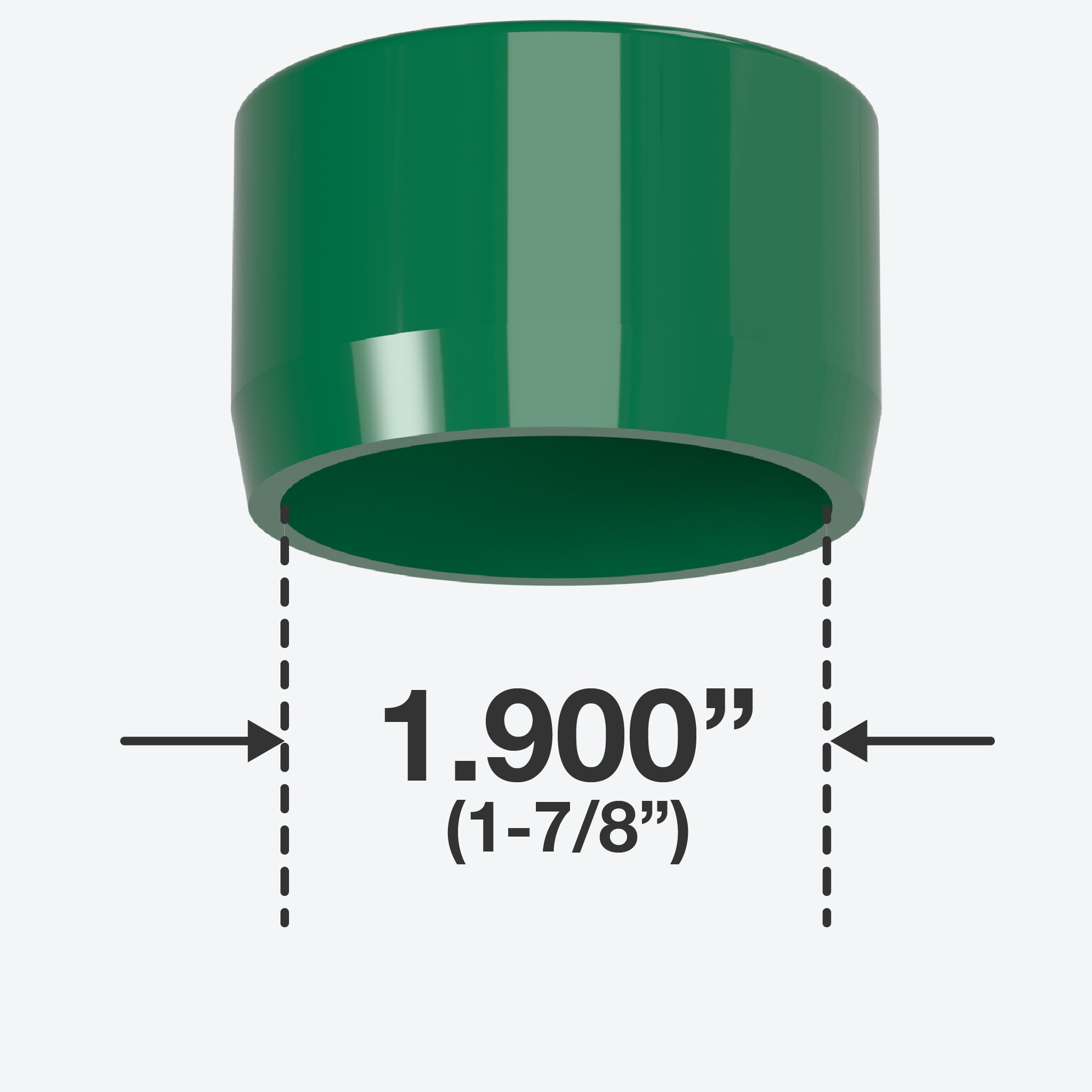 FORMUFIT 1-1/2 in. External Flat End Caps in Green fit over the end of PVC pipe, leaving a slightly raised, flat top. 1-1/2" PVC End Caps have a smooth, even, and flat surface on the top, which can give a stable foundation to any project. In addition, the clean appearance of flat end caps gives a finished and professional look to projects and applications. An exceptional solution for feet or level ends in PVC projects.