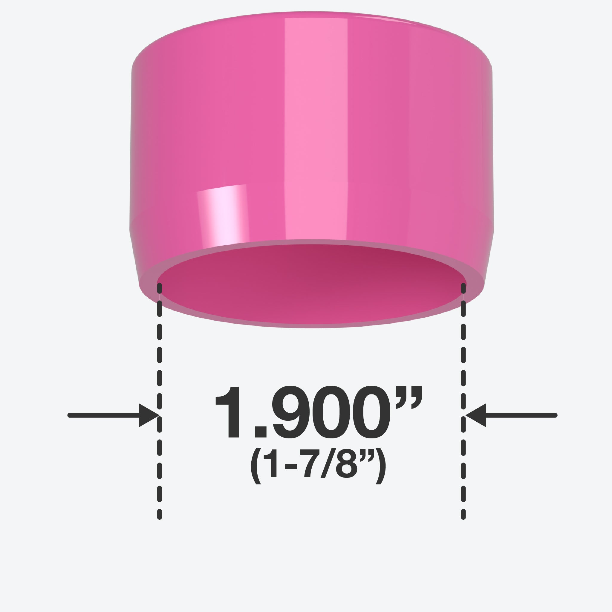 FORMUFIT 1-1/2 in. External Flat End Caps in Pink fit over the end of PVC pipe, leaving a slightly raised, flat top. 1-1/2" PVC End Caps have a smooth, even, and flat surface on the top, which can give a stable foundation to any project. In addition, the clean appearance of flat end caps gives a finished and professional look to projects and applications. An exceptional solution for feet or level ends in PVC projects.