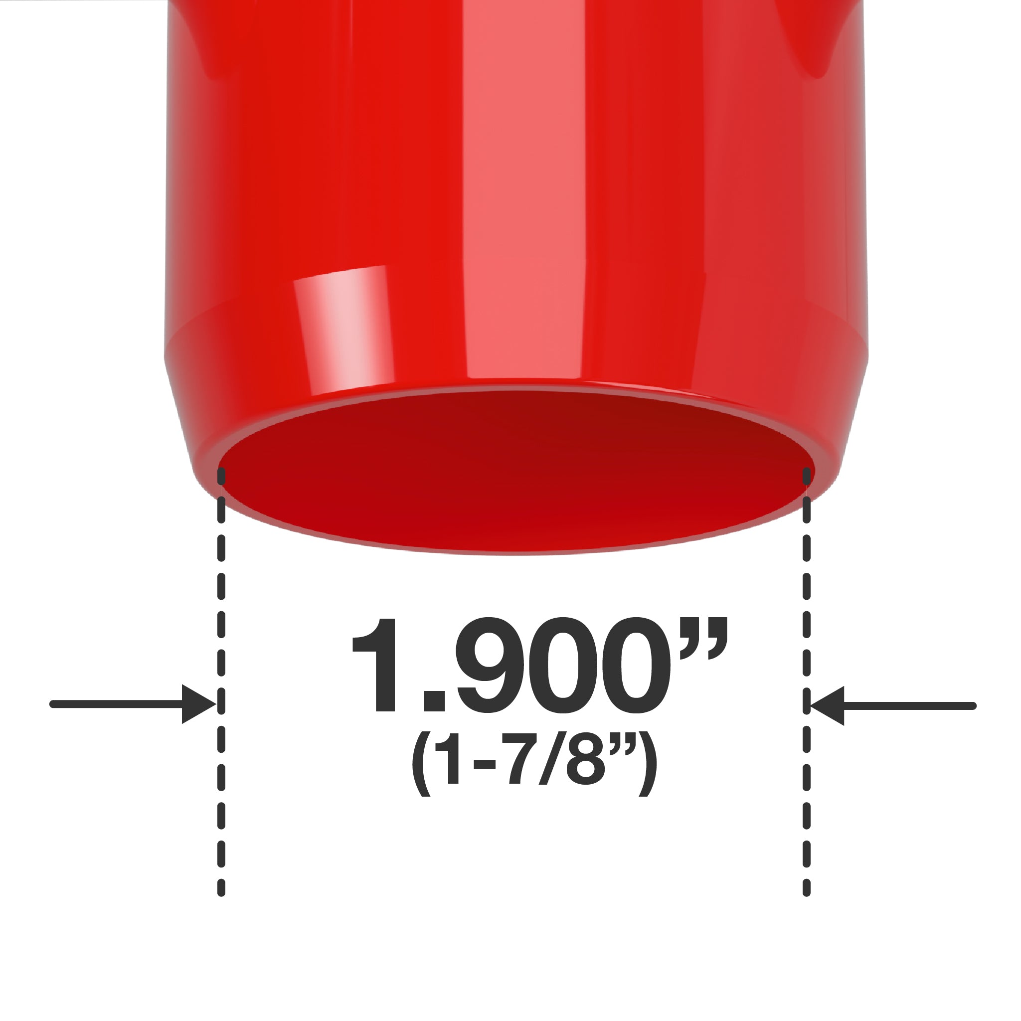 This product will fit 1-1/2" Size PVC pipe, which has an outside diameter of 1.900" (1-7/8") and an inside diameter of approximately 1-1/2".