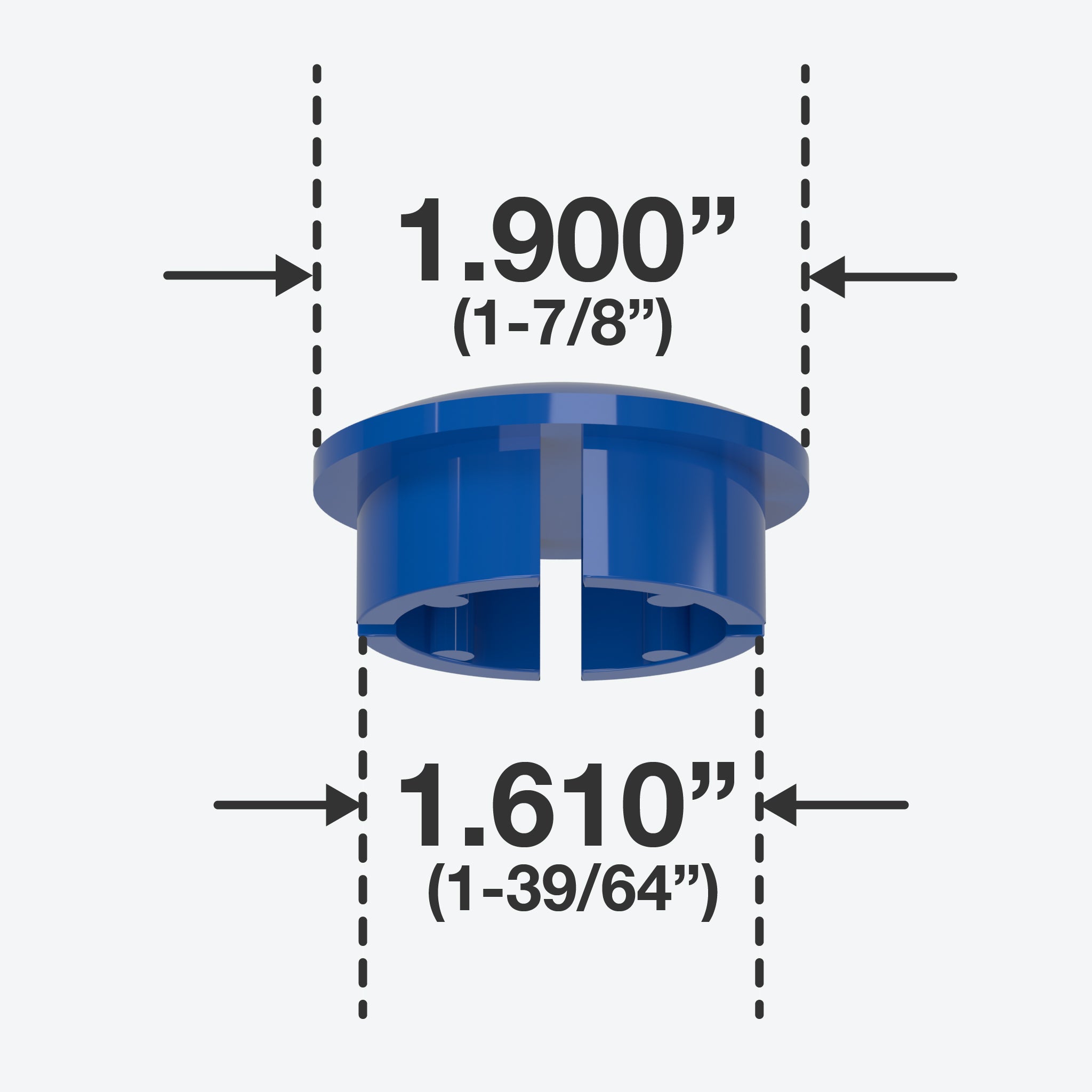 FORMUFIT 1-1/2 in. PVC Internal Dome Caps in Blue fit inside a Schedule 40 PVC pipe, leaving a smooth, domed end. An exceptional solution to make a gentle finish for open ends of PVC pipe. All FORMUFIT PVC inner dome caps have a smooth domed shape on the top, providing a clean, flush end to PVC pipe. Their balanced and simple appearance gives projects and applications a smooth and professional look.