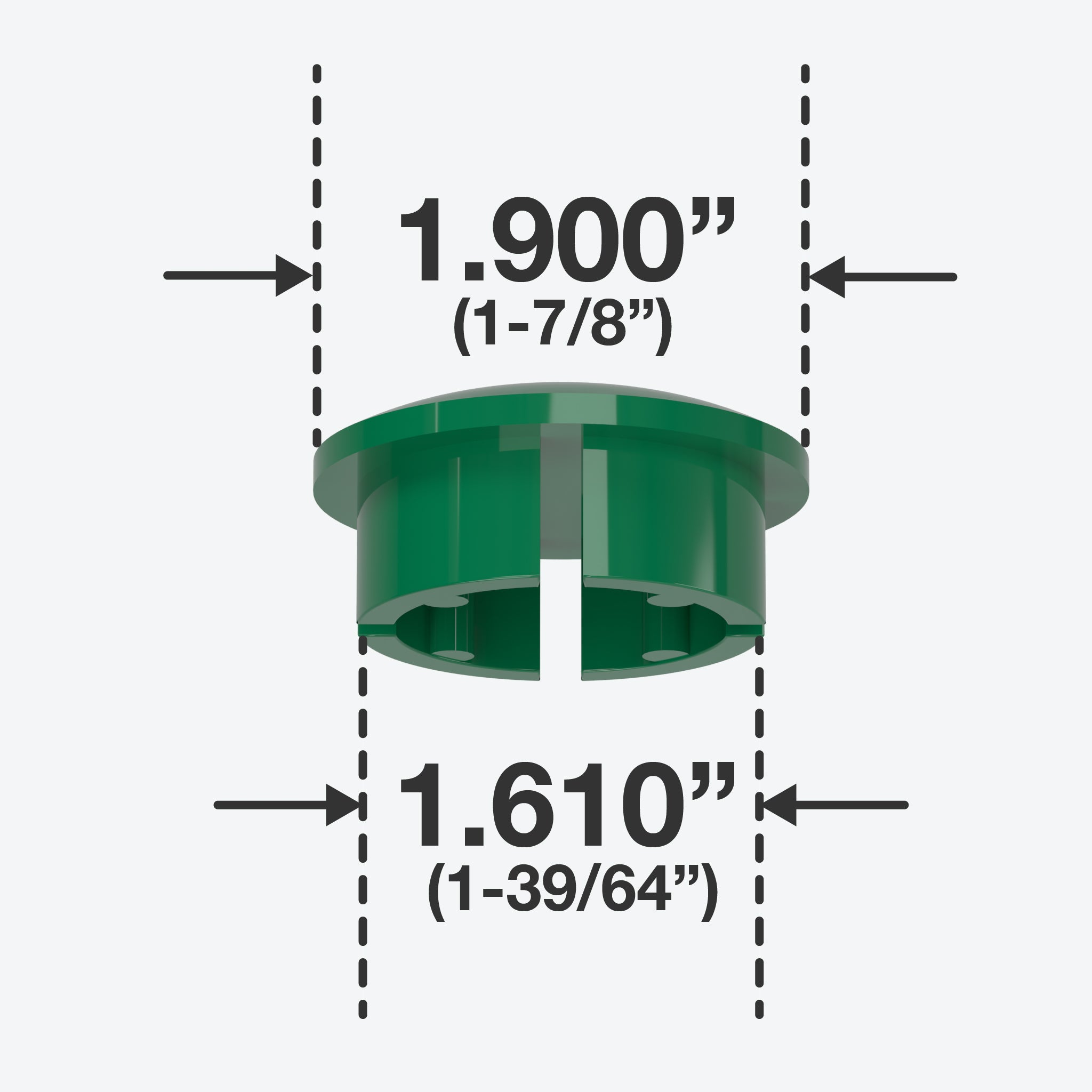 FORMUFIT 1-1/2 in. PVC Internal Dome Caps in Green fit inside a Schedule 40 PVC pipe, leaving a smooth, domed end. An exceptional solution to make a gentle finish for open ends of PVC pipe. All FORMUFIT PVC inner dome caps have a smooth domed shape on the top, providing a clean, flush end to PVC pipe. Their balanced and simple appearance gives projects and applications a smooth and professional look.
