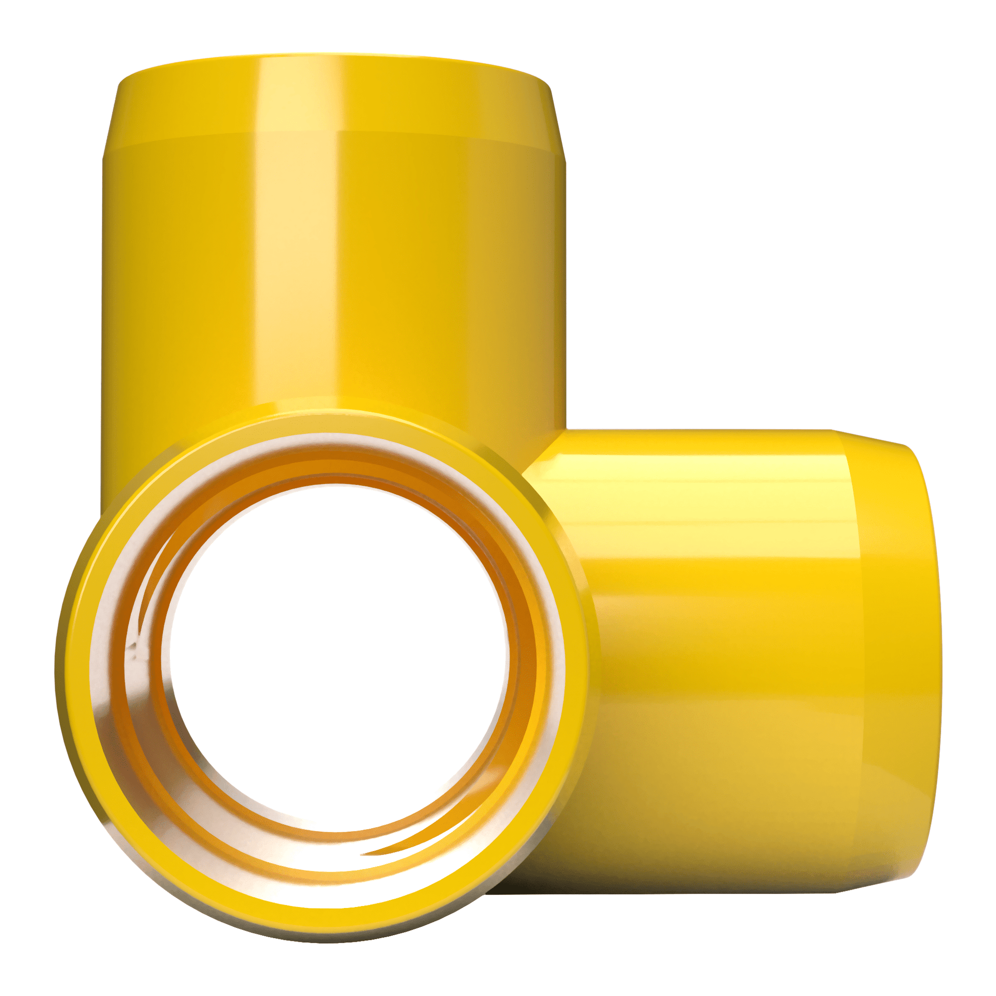 FORMUFIT 1-1/4 in. 4-Way PVC Tee Fittings in Yellow are a straightforward solution to assemble offset or tiered structures made from PVC pipe. 4-Way PVC Tee fittings give your project the extra dimensions it requires. This structural Furniture Grade PVC 4-Way fitting joins 1-1/4 in. size PVC pipe at four points on three planes for multi-tiered connections. There are three sockets on the same plane and a fourth to allow perpendicular connections on top. These fittings provide capabilities you won't find with plumbing-grade fitting options.
