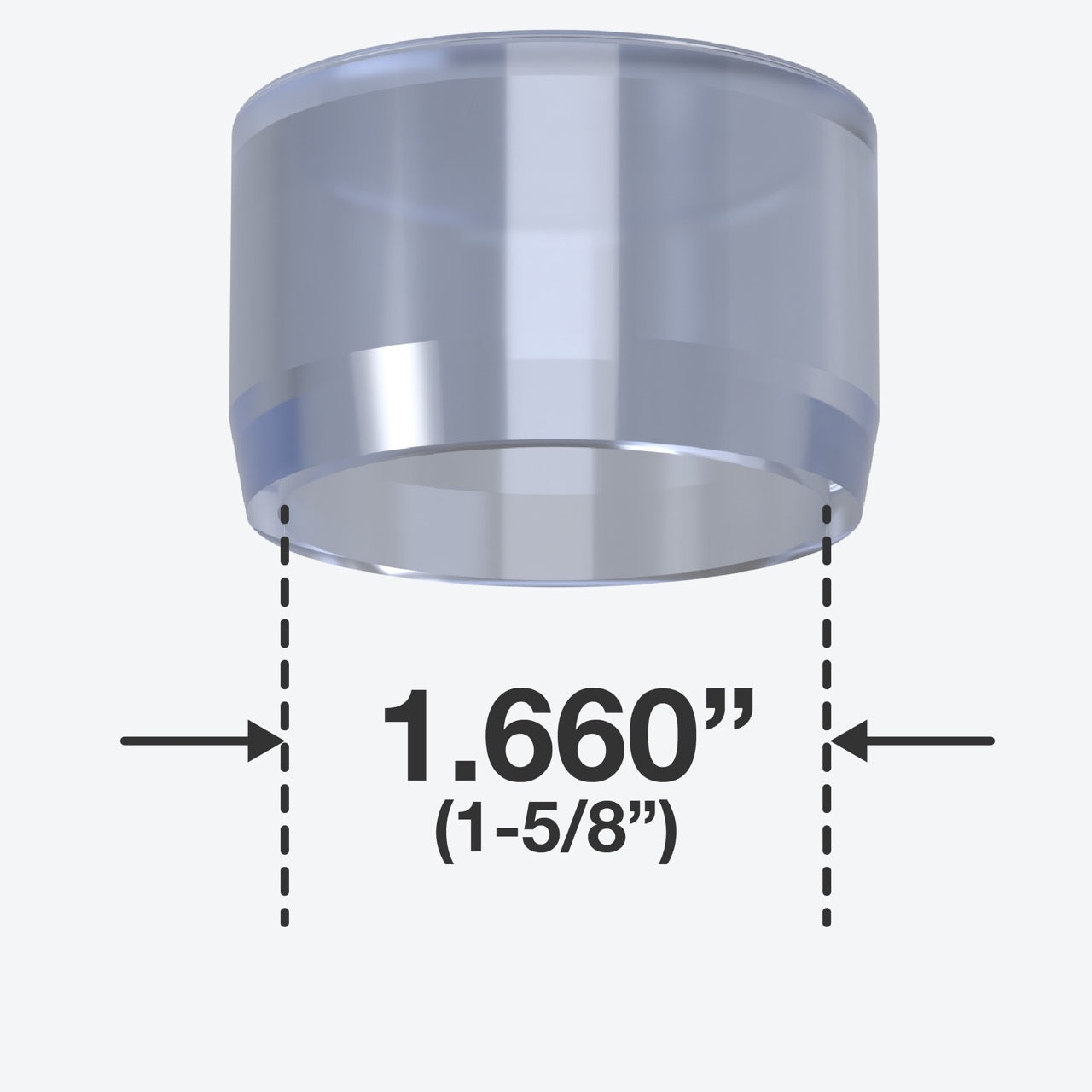 FORMUFIT 1-1/4 in. External Flat End Caps in Clear fit over the end of PVC pipe, leaving a slightly raised, flat top. 1-1/4" clear PVC End Caps have a smooth, even, and flat surface on the top, which can give a stable foundation to any project. In addition, the clear appearance of flat end caps gives a finished and professional look to projects and applications. An exceptional solution for feet or level ends in PVC projects.