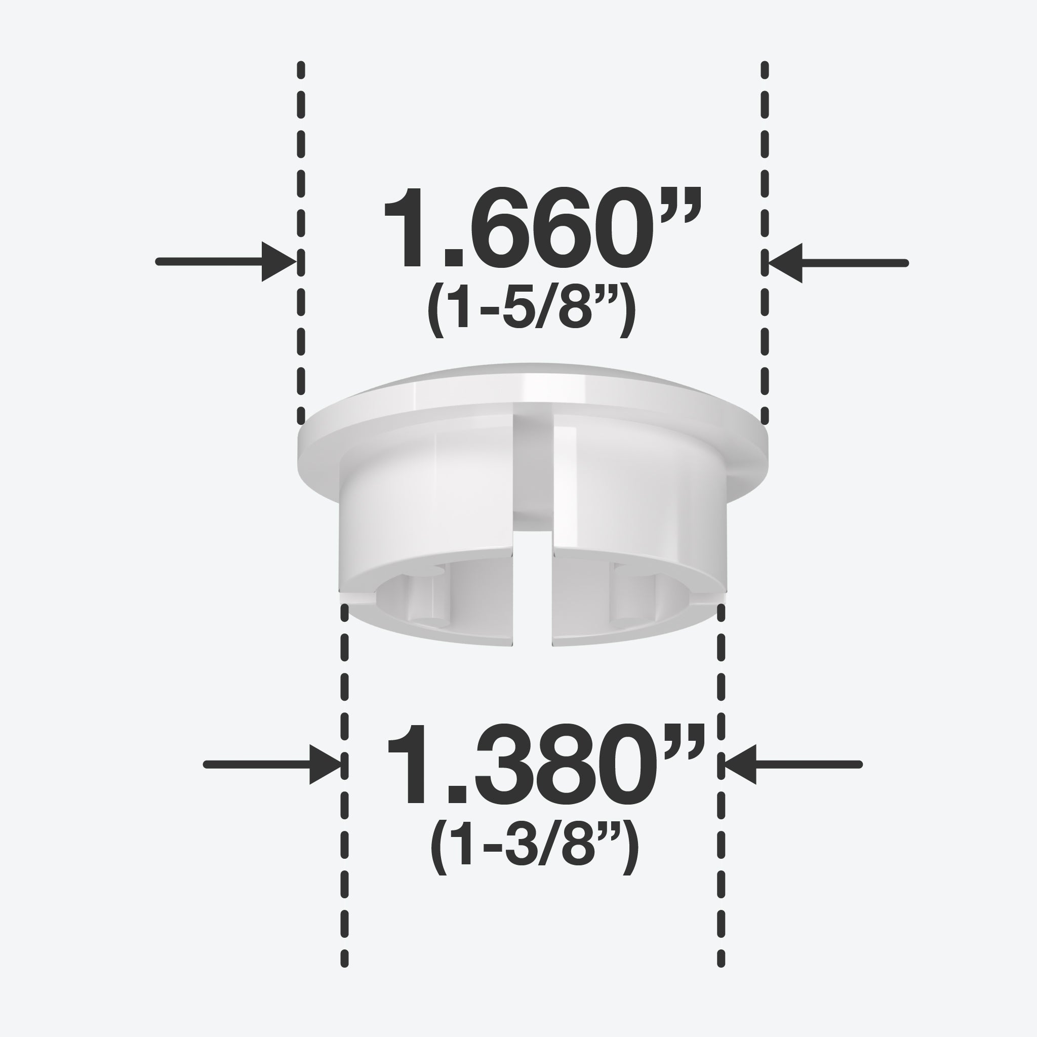 This product will fit 1-1/4” Size Schedule 40 PVC pipe only, which has an outside diameter of 1.660" (1-5/8") and an inside diameter of approximately 1-1/4”.