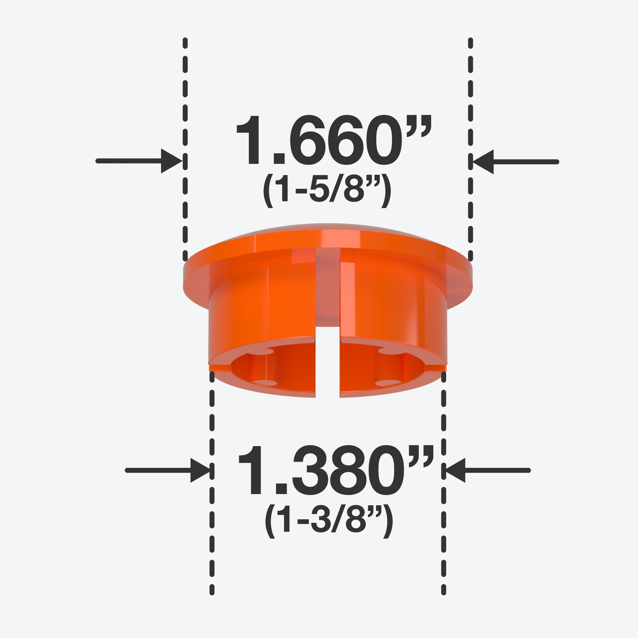 FORMUFIT 1-1/4 in. PVC Internal Dome Caps in Orange fit inside a Schedule 40 PVC pipe, leaving a smooth, domed end. An exceptional solution to make a gentle finish for open ends of PVC pipe. All FORMUFIT PVC inner dome caps have a smooth domed shape on the top, providing a clean, flush end to PVC pipe. Their balanced and simple appearance gives projects and applications a smooth and professional look.