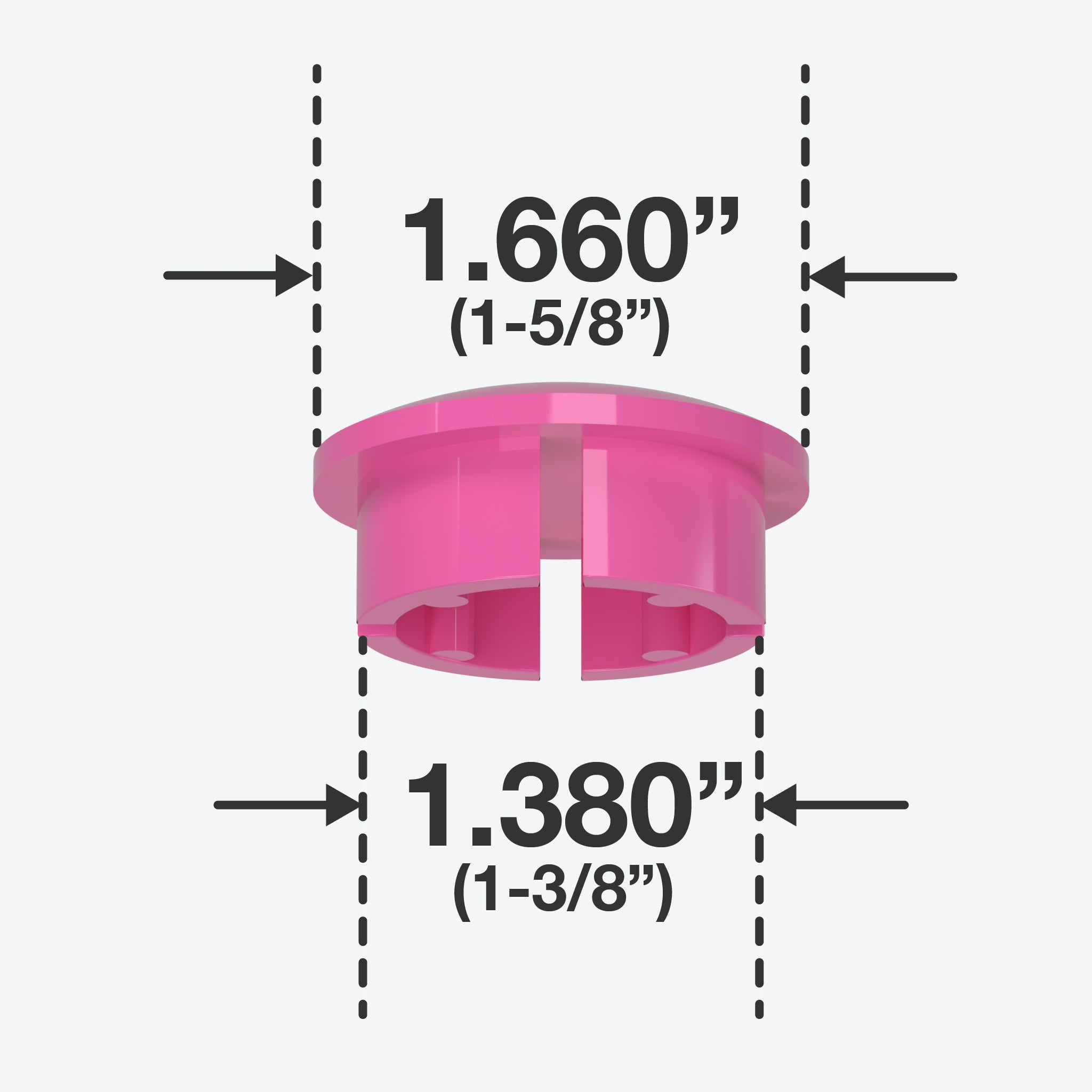 FORMUFIT 1-1/4 in. PVC Internal Dome Caps in Pink fit inside a Schedule 40 PVC pipe, leaving a smooth, domed end. An exceptional solution to make a gentle finish for open ends of PVC pipe. All FORMUFIT PVC inner dome caps have a smooth domed shape on the top, providing a clean, flush end to PVC pipe. Their balanced and simple appearance gives projects and applications a smooth and professional look.