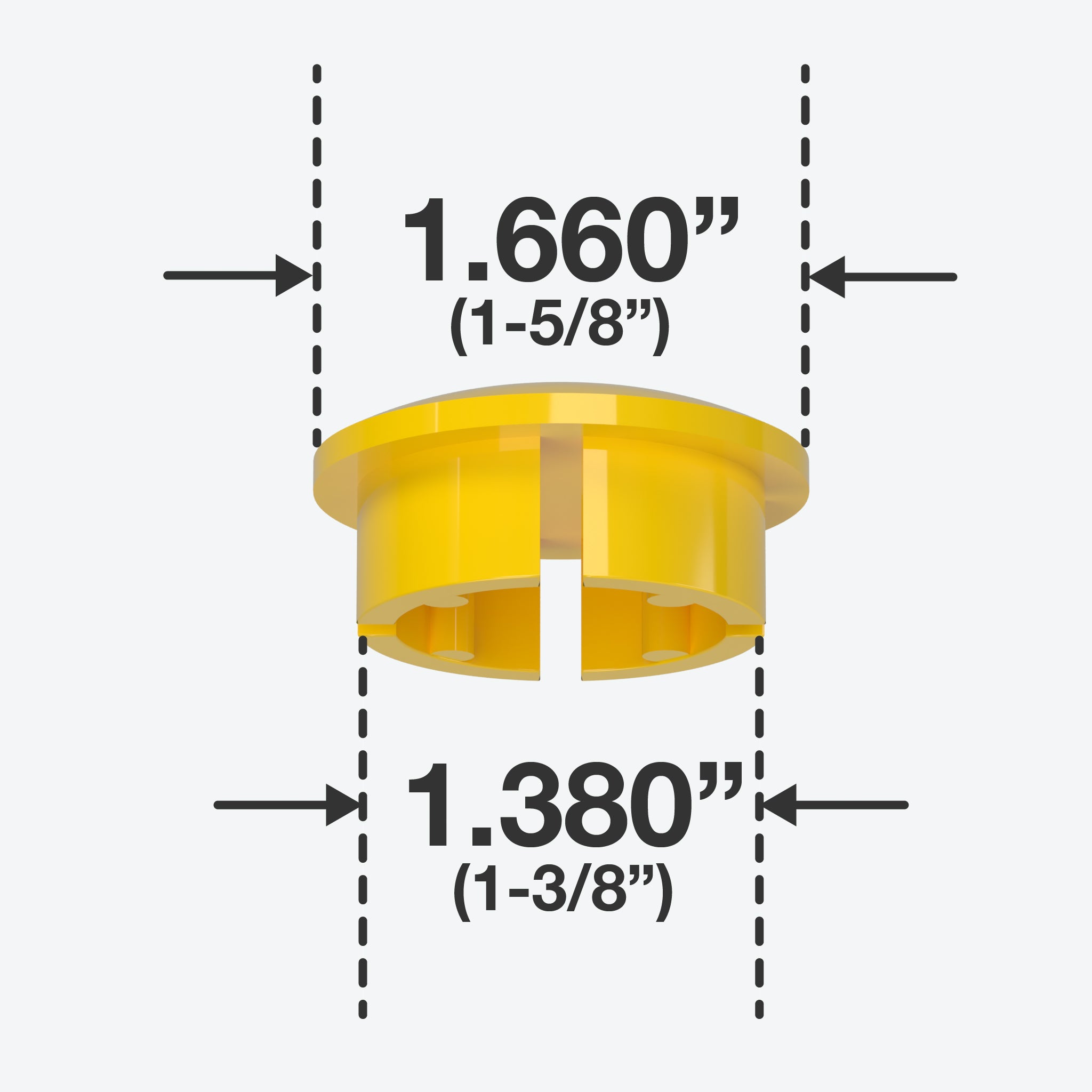 FORMUFIT 1-1/4 in. PVC Internal Dome Caps in Yellow fit inside a Schedule 40 PVC pipe, leaving a smooth, domed end. An exceptional solution to make a gentle finish for open ends of PVC pipe. All FORMUFIT PVC inner dome caps have a smooth domed shape on the top, providing a clean, flush end to PVC pipe. Their balanced and simple appearance gives projects and applications a smooth and professional look.