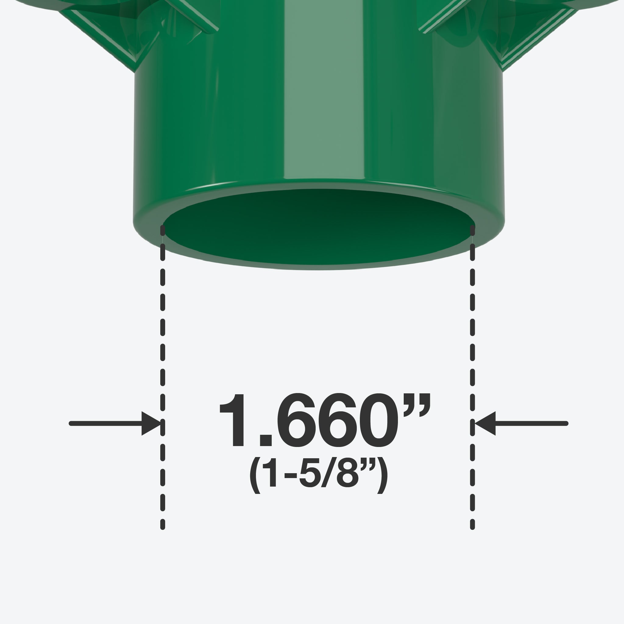 FORMUFIT 1-1/4 in. Table Screw Caps in Green are external caps that secure over the end of 1-1/4" Size PVC pipe and include holes to attach the cap with fasteners, such as screws or nails, to flat surface materials. Table caps let you attach PVC pipe segments to a wall, connect pipe underneath a table, or link PVC to other flat materials that accept a fastener.