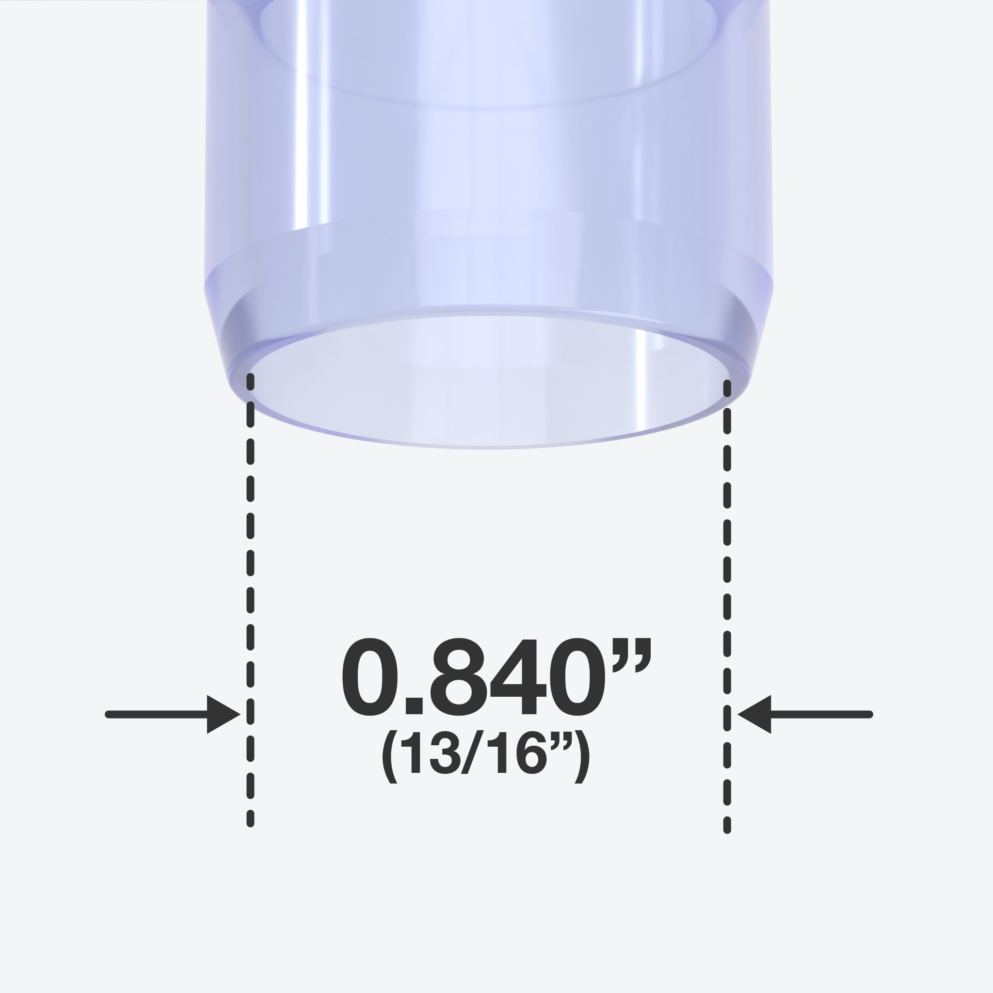 This product is specifically designed to fit 1/2" PVC pipe, which has an actual outside diameter of 0.840 in.