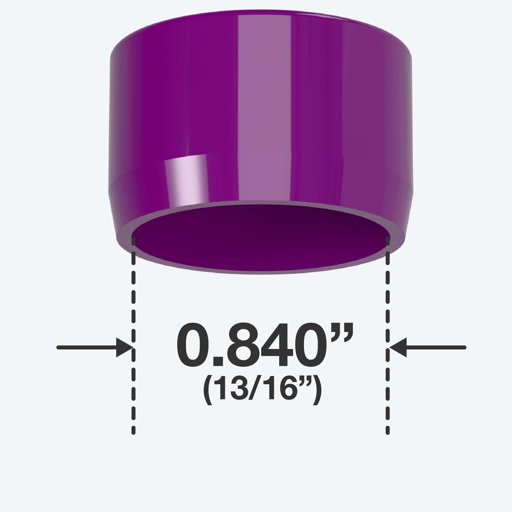 FORMUFIT 1/2 in. External Flat End Caps in Purple fit over the end of PVC pipe, leaving a slightly raised, flat top. 1/2" PVC End Caps have a smooth, even, and flat surface on the top, which can give a stable foundation to any project. In addition, the clean appearance of flat end caps gives a finished and professional look to projects and applications. An exceptional solution for feet or level ends in PVC projects.