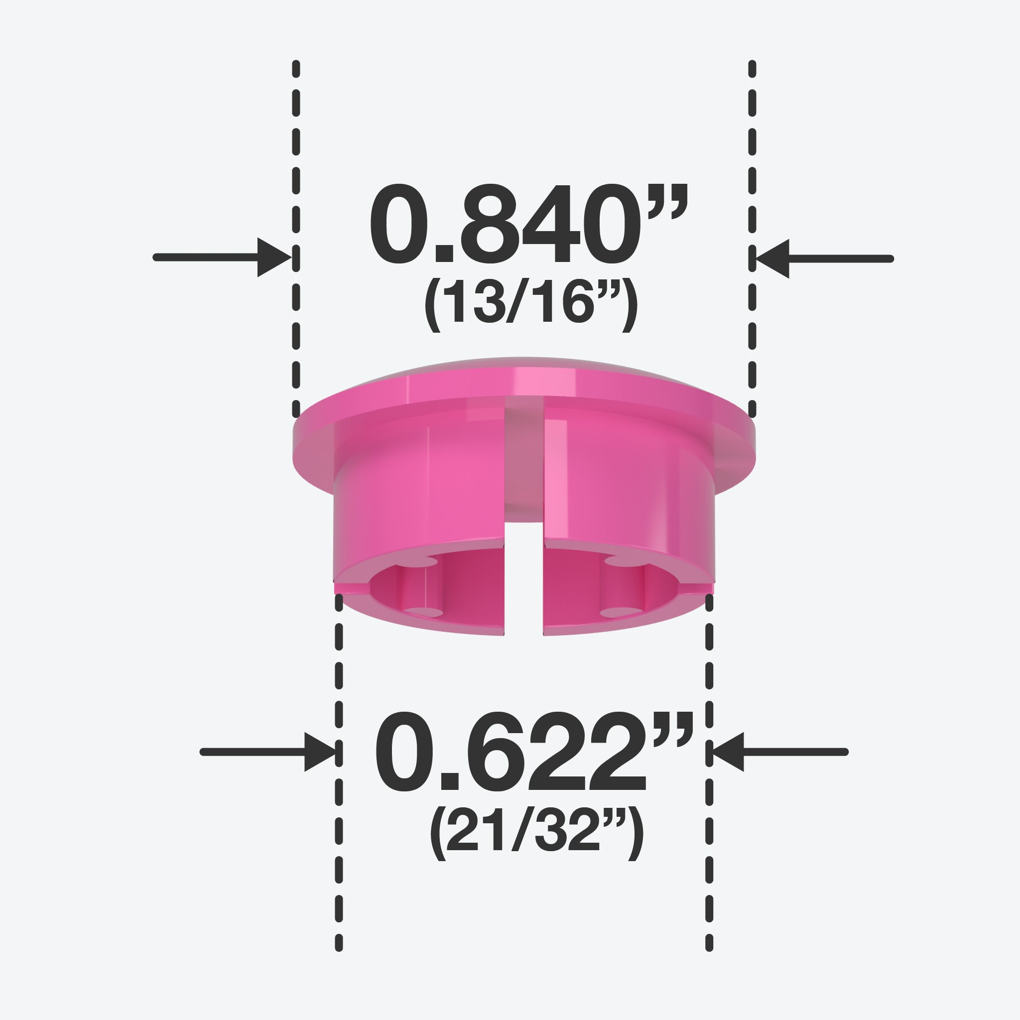 FORMUFIT 1/2 in. PVC Internal Dome Caps in Pink fit inside a Schedule 40 PVC pipe, leaving a smooth, domed end. An exceptional solution to make a gentle finish for open ends of PVC pipe. All FORMUFIT PVC inner dome caps have a smooth domed shape on the top, providing a clean, flush end to PVC pipe. Their balanced and simple appearance gives projects and applications a smooth and professional look.