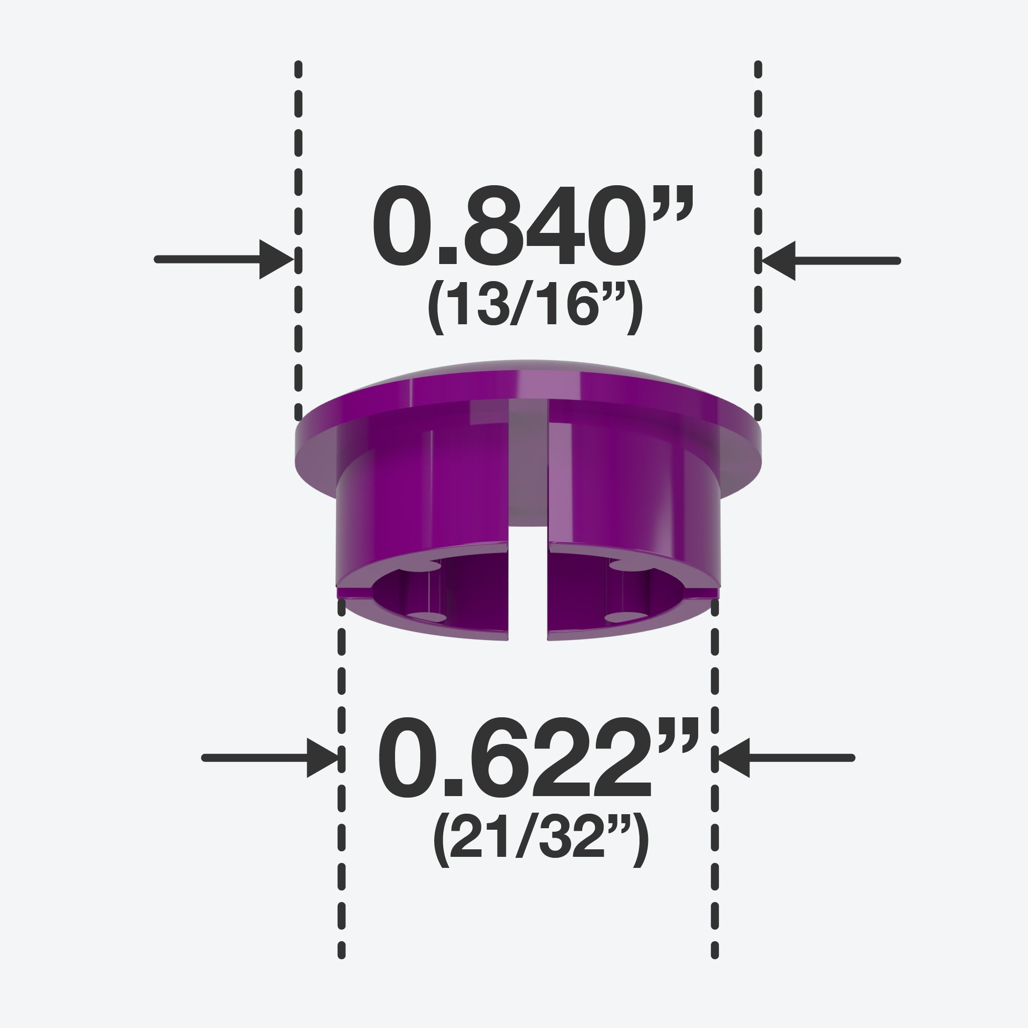FORMUFIT 1/2 in. PVC Internal Dome Caps in Purple fit inside a Schedule 40 PVC pipe, leaving a smooth, domed end. An exceptional solution to make a gentle finish for open ends of PVC pipe. All FORMUFIT PVC inner dome caps have a smooth domed shape on the top, providing a clean, flush end to PVC pipe. Their balanced and simple appearance gives projects and applications a smooth and professional look.