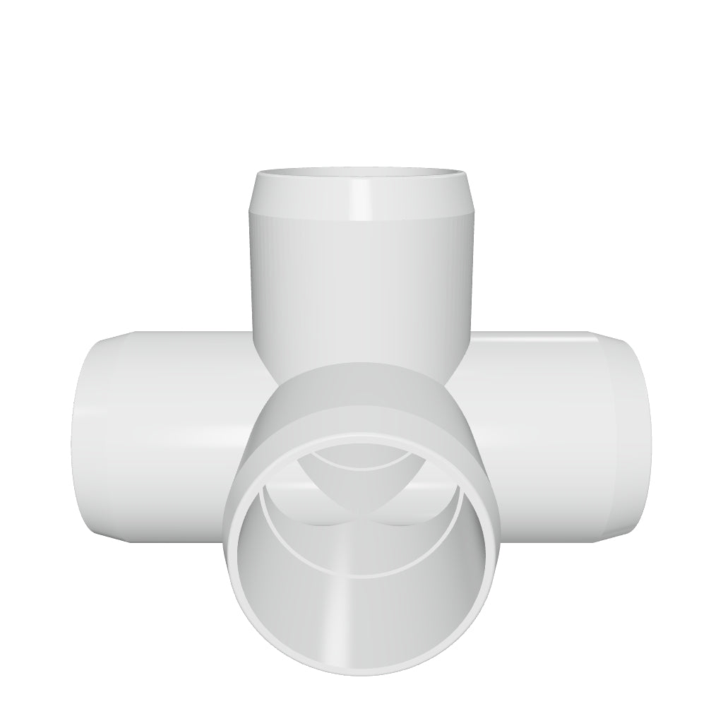 FORMUFIT 1 in. 5-Way PVC Cross fittings in Gray connect 1" Size PVC pipe at five points on three planes. 5-Way Cross fittings are essential when building a base, stand, or footing application. 5-Way fittings have four sockets in a cross configuration and a 5th for perpendicular connections.