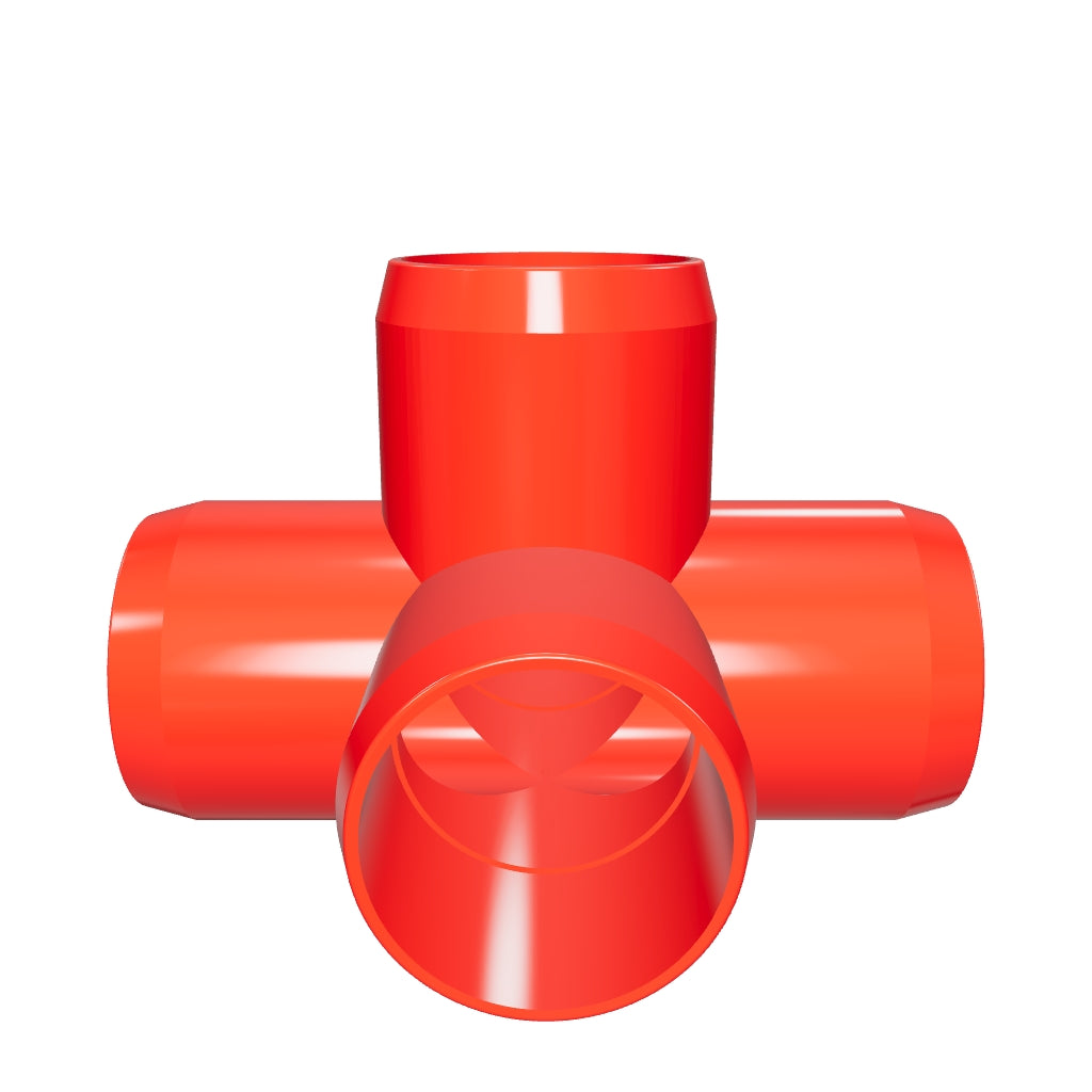 FORMUFIT 1 in. 5-Way PVC Cross fittings in Red connect 1" Size PVC pipe at five points on three planes. 5-Way Cross fittings are essential when building a base, stand, or footing application. 5-Way fittings have four sockets in a cross configuration and a fifth for perpendicular connections.