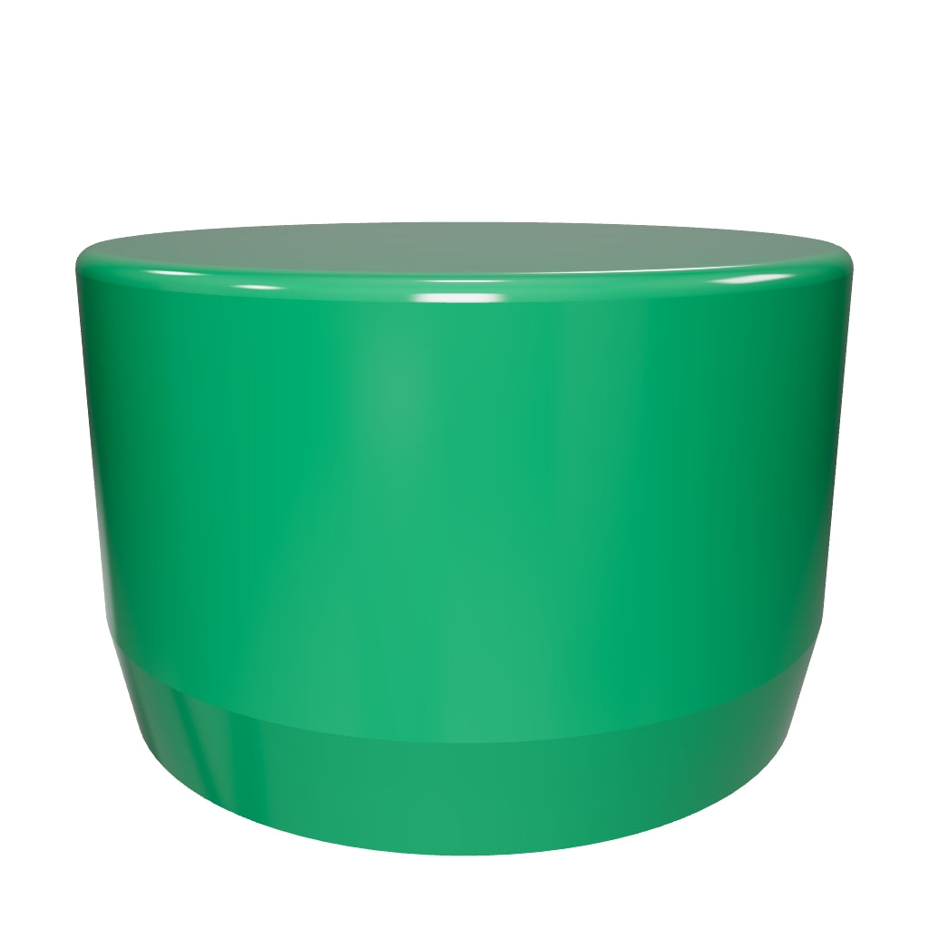 FORMUFIT 1 in. External Flat End Caps in Green fit over the end of PVC pipe, leaving a slightly raised, flat top. 1" PVC End Caps have a smooth, even, and flat surface on the top, which can give a stable foundation to any project. In addition, the clean appearance of flat end caps gives a finished and professional look to projects and applications. An exceptional solution for feet or level ends in PVC projects.