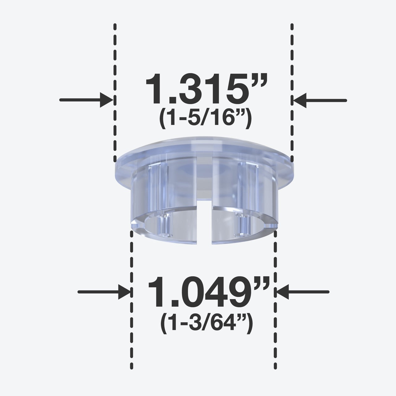 FORMUFIT 1 in. PVC Internal Dome Caps in Clear fit inside a Schedule 40 PVC pipe, leaving a smooth, domed end. An exceptional solution to make a gentle finish for open ends of clear PVC pipe. FORMUFIT clear PVC inner dome caps have a smooth domed shape on the top, providing a clean, flush end to PVC pipe. Their balanced and simple appearance gives projects and applications a smooth and professional look.