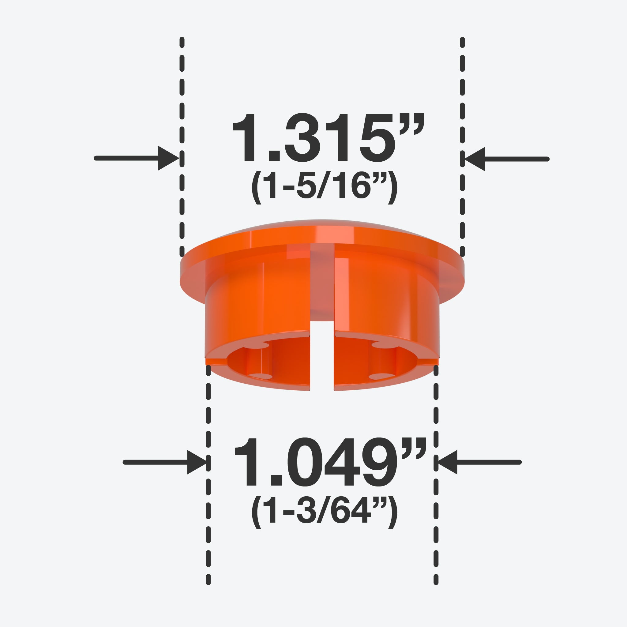 FORMUFIT 1 in. PVC Internal Dome Caps in Orange fit inside a Schedule 40 PVC pipe, leaving a smooth, domed end. An exceptional solution to make a gentle finish for open ends of PVC pipe. All FORMUFIT PVC inner dome caps have a smooth domed shape on the top, providing a clean, flush end to PVC pipe. Their balanced and simple appearance gives projects and applications a smooth and professional look.
