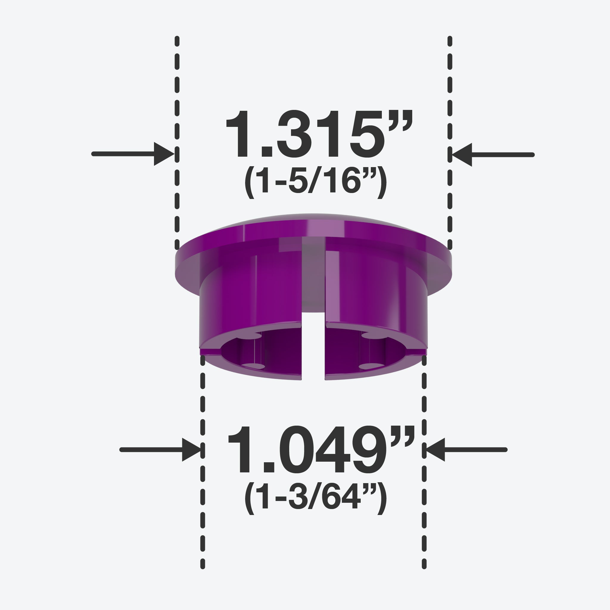 FORMUFIT 1 in. PVC Internal Dome Caps in Purple fit inside a Schedule 40 PVC pipe, leaving a smooth, domed end. An exceptional solution to make a gentle finish for open ends of PVC pipe. All FORMUFIT PVC inner dome caps have a smooth domed shape on the top, providing a clean, flush end to PVC pipe. Their balanced and simple appearance gives projects and applications a smooth and professional look.
