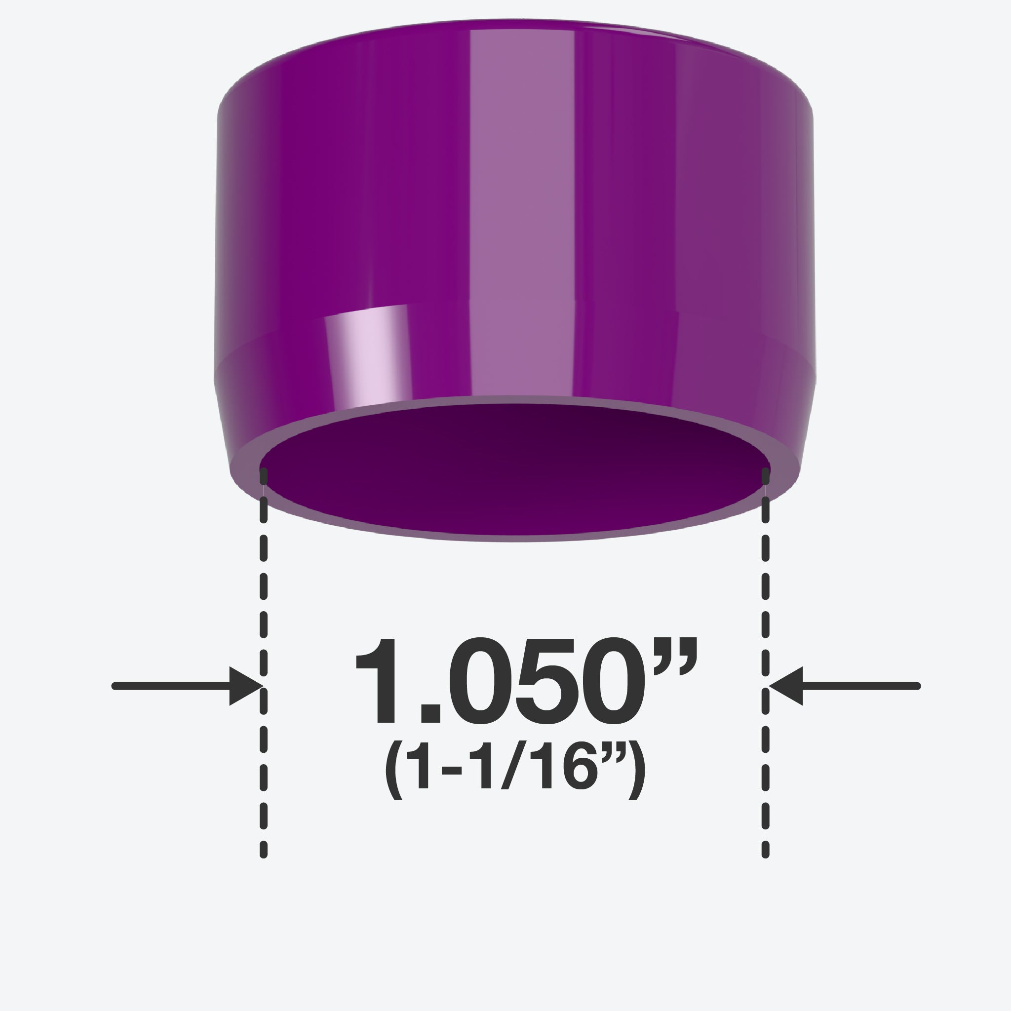 FORMUFIT 3/4 in. External Flat End Caps in Purple fit over the end of PVC pipe, leaving a slightly raised, flat top. 3/4" PVC End Caps have a smooth, even, and flat surface on the top, which can give a stable foundation to any project. In addition, the clean appearance of flat end caps gives a finished and professional look to projects and applications. An exceptional solution for feet or level ends in PVC projects.